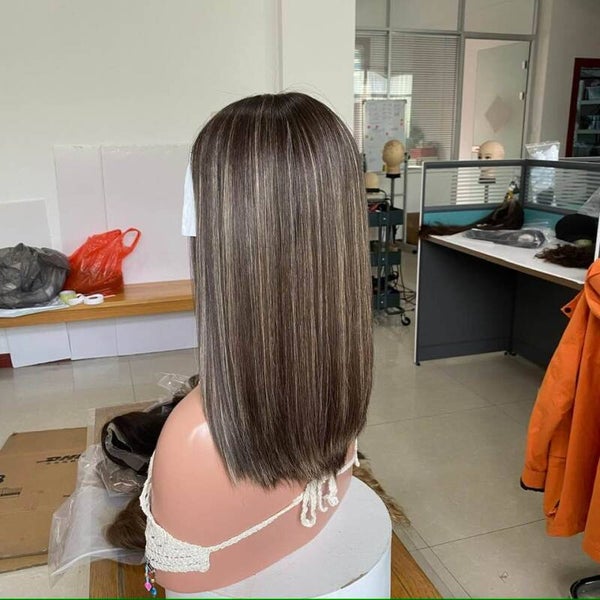 European hh wig mini layer 16 inch darker brown w/ highlights 11x4 Swiss lace